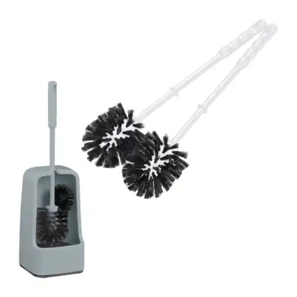 • WC-Bürsten, 2 Stück, mit Randreiniger, ca. 37 cm lang, Farbe: grau