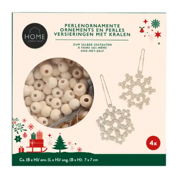 - Perlenornamente: 60 große Holzperlen, 90 kleine Holzperlen