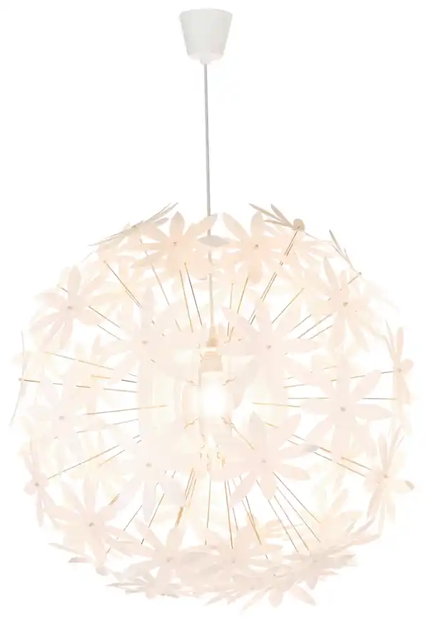 Die charmante Hängeleuchte Stella bringt mit ihrem weißen Blumendesign frischen Wind in Ihr Zuhause. Mit einem Durchmesser von ca. 60 cm und einer Höhe von 150 cm beeindruckt diese stilvolle Leuchte durch ihre kunstvoll geformten Kunststoffblumen, die zu einer Kugel arrangiert sind. Dieses außergewöhnliche Design sorgt für ein faszinierendes Lichtspiel, das jeden Raum in eine warme und einladende Atmosphäre taucht. Die Hängeleuchte Stella ist mit einer E27-Fassung ausgestattet und für ein Leuchtmittel mit einer maximalen Leistung von 60 W geeignet. Durch ihre Kompatibilität mit energieeffizienten Leuchtmitteln können Sie die Leuchte individuell an Ihre Bedürfnisse anpassen. Betrieben wird Stella über Netzstrom bei einer Spannung von 230 V. Dank der Schutzklasse I und ihrer Konstruktion als Hochvoltleuchte bietet sie nicht nur ein ansprechendes Design, sondern auch hohe Sicherheit und Langlebigkeit. Ob im Wohnzimmer, Schlafzimmer, Essbereich oder Kinderzimmer – die Hängeleuchte Stella setzt stilvolle Akzente und bringt frische Leichtigkeit in jeden Raum. Lassen Sie sich von der modernen Blumengestaltung und dem einzigartigen Lichtspiel begeistern und verwandeln Sie Ihr Zuhause in eine Wohlfühloase. HINWEIS