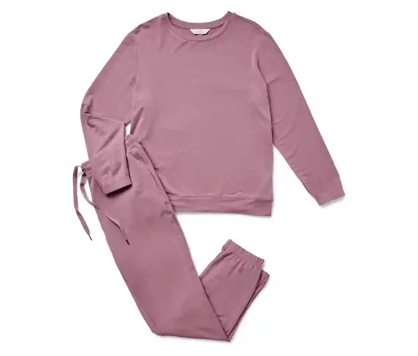 Hausanzug Farbe: Mauve Material: 95% Modal, 5% Elasthan Maße: Oberteil Gesamtlänge ca. 67 cm (Gr. M 40/42) Hose Innenbeinlänge ca. 73 cm Angenehm weiche Modal-Stretch-QualitätOberteil mit leicht überschnittener SchulterpartieBündchen an ArmabschlüssenHose mit elastischem Bund und Bündchen an BeinabschlüssenSeitliche EingrifftaschenMit hochwertigem Markenelasthan für Langlebigkeit und hohe WaschbeständigkeitDieser Hausanzug beinhaltet Fasern aus nachhaltigem Holz.