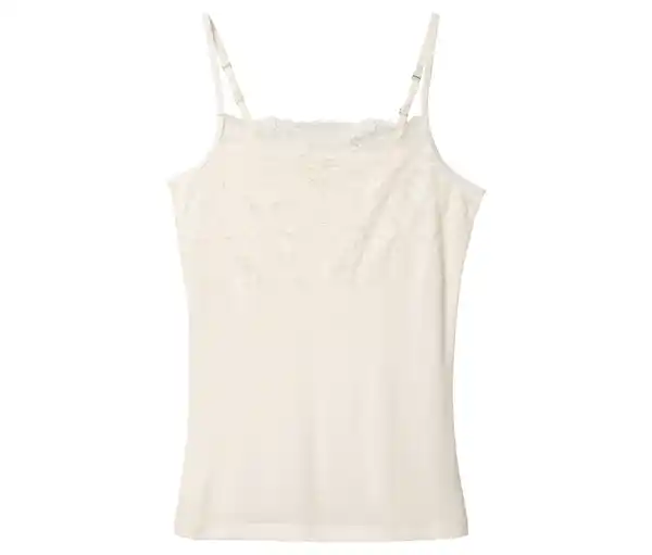 Hemdchen, creme Farbe: Creme Material: 95% Modal, 5% Elasthan Spitze 84% Polyamid, 16% Elasthan Brustbereich mit zarter, weicher SpitzeAngenehm weiche Modal-Stretch-QualitätLängenverstellbare TrägerMit hochwertigem Markenelasthan für Langlebigkeit und hohe Waschbeständigkeit