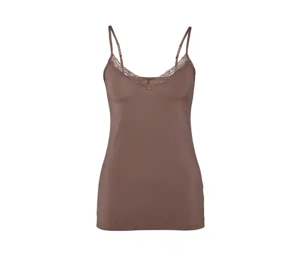 Hemdchen, nougat Farbe: Nougat Material: 85% Polyamid, 15% Elasthan Spitze 91% Polyamid, 9% Elasthan Maße: Gesamtlänge ca. 41 cm (Gr. M 40/42) Damen-Unterhemden in softer Microtouch-QualitätV-Ausschnitt mit zarter SpitzeLängenverstellbare TrägerMit hochwertigem Markenelasthan für Langlebigkeit und hohe Waschbeständigkeit