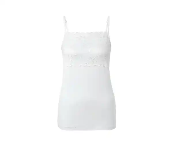 Hemdchen, weiß Farbe: Weiß Material: 95% Modal, 5% Elasthan Spitze 82% Polyamid, 18% Elasthan Brustbereich mit zarter, weicher SpitzeAngenehm weiche Modal-Stretch-QualitätLängenverstellbare TrägerMit hochwertigem Markenelasthan für Langlebigkeit und hohe WaschbeständigkeitDieses Hemdchen beinhaltet Fasern aus nachhaltigem Holz.