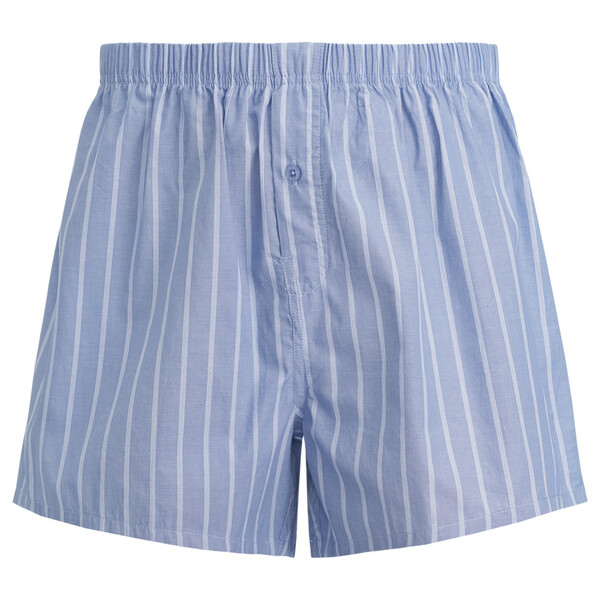 Nie genug davon! Hellblaue Boxershorts mit weißen Streifen allover. Klassische Boxershorts-Passform aus gewebter Baumwolle mit langem Bein, kombiniert mit elastischem Bund für einen angenehmen Tragekomfort. Einfach geknöpfter Eingriff. Hinweis: Beim Kauf der Mindestanzahl an Artikeln wird der günstigste Artikel auf die aktionsberechtigten Artikel angerechnet! Nur gültig für Ware der Marke vanVaan mit diesem Hinweis. Nicht kombinierbar mit anderen (Aktions-)Rabatten.