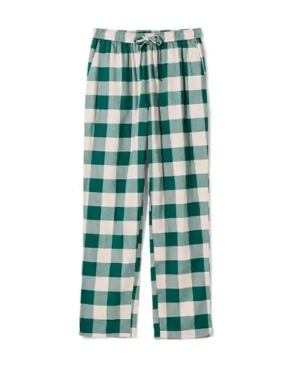Diese Herren-Pyjamahose mit grünen und weißen Karos hat einen elastischen Bund, Seitentaschen und ist aus weichem und warmem Baumwollflanell gefertigt.