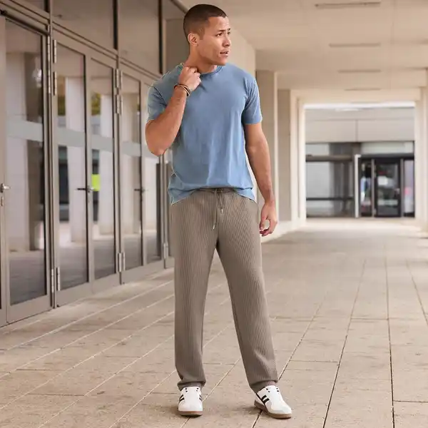 Diese Herren-Hose mit Waffel-Optik von Reward Collection bietet einen stilvollen Look für Alltag und Büro. Der elastische Bund mit Kordelzug sorgt für angenehmen Sitz, während zwei seitliche Paspeltaschen ausreichend Stauraum bieten. Der dekorative Reißverschluss setzt einen zusätzlichen Akzent. Modernes Design mit Waffel-Optik Bequemer elastischer Bund mit Kordelzug Zwei praktische seitliche Paspeltaschen Dekorativer Reißverschluss als Detail Materialmix aus Viskose und Elasthan