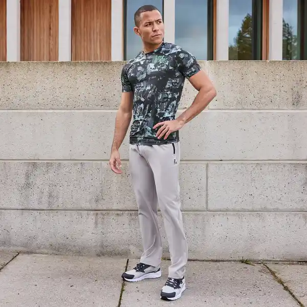 Diese Herren-Trainingshose von Sports überzeugt mit ihrem funktionalen Mikrofaser-Material. Das Modell bietet dank elastischem Bund mit Kordelzug eine individuelle Passform und sorgt durch praktische Reißverschlusstaschen für sicheren Stauraum bei jeder Aktivität. Die bügelfreie, atmungsaktive Qualität unterstützt ein angenehmes Tragegefühl beim Sport. Sportliches Design mit Logoprint Gerader, komfortabler Schnitt Elastischer Bund mit Kordelzug Seitentaschen mit Reißverschluss Atmungsaktiv, schnelltrocknend, bügelfrei