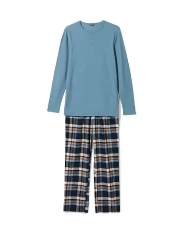 Herrenschlafanzug Flanell und Waffel mittelblau