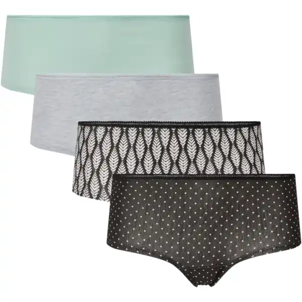 Kleidergrößen: M, Farbe: gemustert, Material: Baumwolle, Art Unterhose / Slip / Boxershorts: Hipster, Materialverarbeitung: Jersey, Menge: 4 Stück, Trockenanweisung: Nicht trocknergeeignet, Waschanweisung: Maschinenwäsche bis 40 °C, Artikelnummer: 3213299
