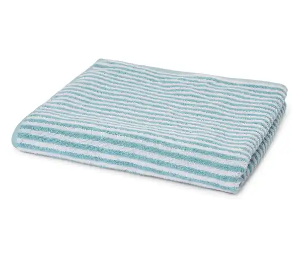 Hochwertiges Badetuch, blau Farbe: Blau-weiß gestreift Material: 100% Baumwolle Maße: Ca. 70 x 130 cm Besonders weich und saugfähigHochwertige Baumwollqualität – waschfest und strapazierfähigBorte verzieht sich nicht beim WaschenAufhänger an kurzer Seite