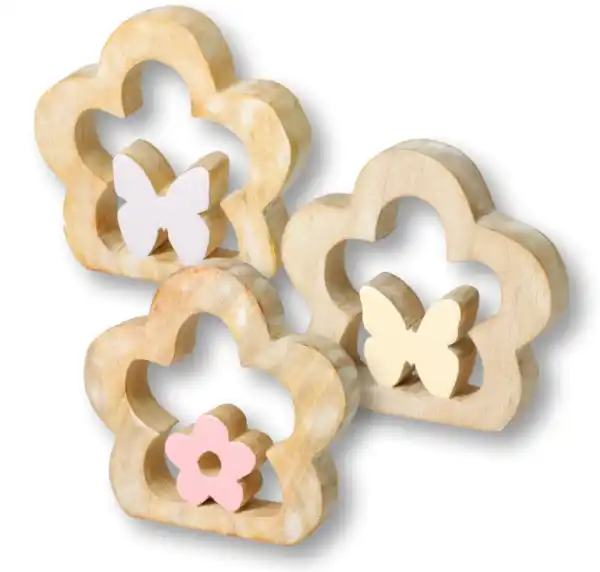 Motiv: Blume oder Schmetterling, rosa, helllila oder gelb, 15 x 15 x 2,5 cm (B x H x T)