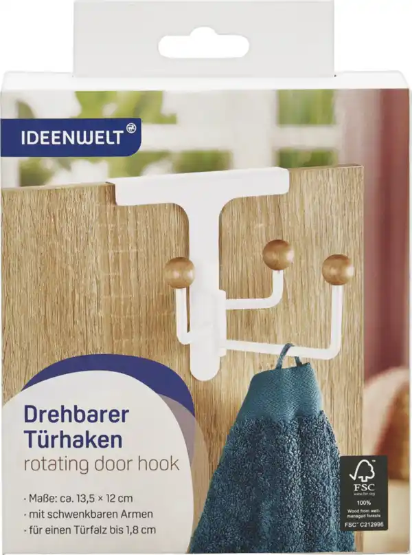 IDEENWELT Drehbarer Türhaken weiß