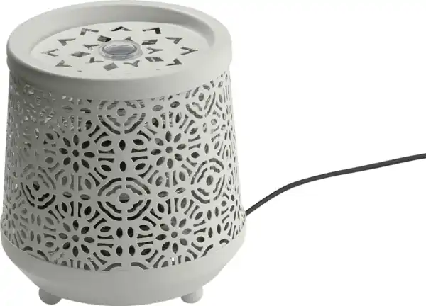 - mit warmweißen LEDs und Plätschergeräuschen