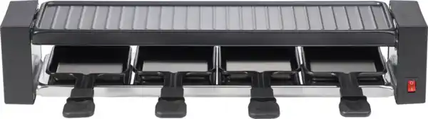 - inkl. 4 beschichteter Raclettepfännchen und 4 Holzspatel