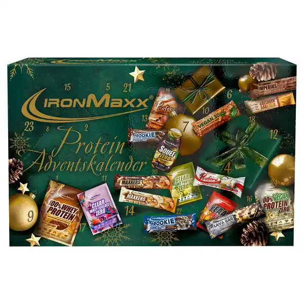 - IronMaxx Adventskalender mit Protein Pulver, Protein Riegel und Nahrungsergänzungsmittel in 24 Türchen
