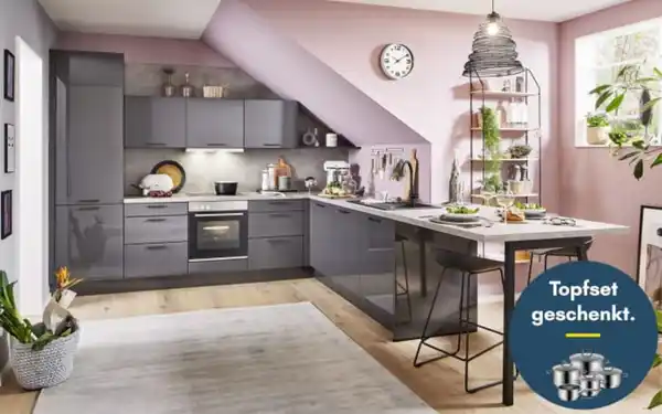 Impressa - Einbauküche Perfect Brillant, perlgrau, inkl. Privileg Elektrogeräte