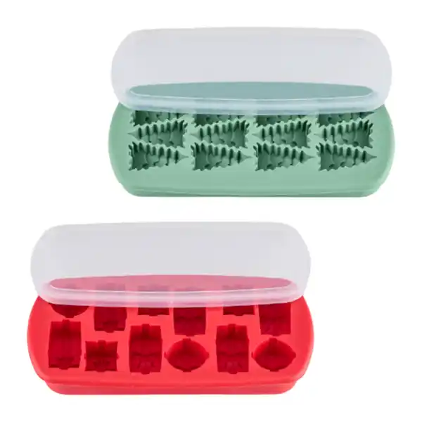 - Eiswürfelform „Tannenbaum” oder „Geschenke“, Stück, mit Deckel, je für 12 Eiswürfel