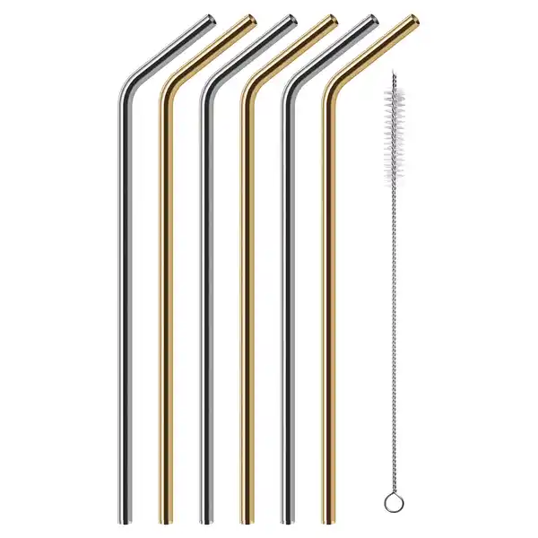 Verschiedene wiederverwendbare Trinkhalme sowie Zubehör