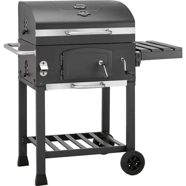 Erlebe genussvolle Grillmomente mit dem Jamestown Holzkohlegrill Jaxon mit modularem Grillrost. Dieser vielseitige Grill ist dein idealer Begleiter für gemütliche Grillabende und spannende Räucherprojekte. Dank seiner Rollen ist der Grill fahrbar und lässt sich flexibel an jeden gewünschten Ort bewegen. Herzstück ist das modulare gusseiserne Grillrost, das dir vielseitige Möglichkeiten für die Zubereitung deiner Speisen bietet. Mit einer großzügigen Gesamtgrillfläche von 57 cm x 41,5 cm (B x T) hast du ausreichend Platz für Steaks, Würstchen und Gemüse. Die robuste Konstruktion aus Stahl garantiert Langlebigkeit und Stabilität, damit du viele Jahre Freude an deinem Jaxon hast.