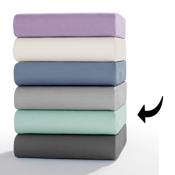 Dreamtex Jersey-Spannbetttuch Faltenfreier Sitz Pflegeleicht und bügelfrei Einlaufschutz durch Sanfor-Knit-Ausrüstung Maße Ca. 90 - 100 x 200 cm Steghöhe ca. 30 cm Material 50% Polyester 50% Baumwolle Farben In den Farben Flieder, Offwhite, Blau, Silber, Grün und Grau erhältlich Lieferumfang 1x Dreamtex Jersey-Spannbetttuch