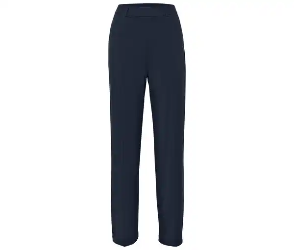 Jerseyhose mit Biese Farbe: Dunkelblau Material: 65% Viskose, 30% Polyamid, 5% Elasthan (Creora®) Maße: Innenbeinlänge ca. 76 cm Passform: Regular Fit Elastische Qualität mit ViskoseElastischer Bund mit GürtelschlaufenWeites, gerades Bein2 seitliche Eingrifftaschen und 2 Zier-Paspeltaschen hintenHigh Waist Vorderseite mit Biese, Rückseite mit permanenter BügelfalteMit Elasthan: formbeständig, perfekter Sitz, hoher TragekomfortDiese Hose beinhaltet Fasern aus nachhaltigem Holz.