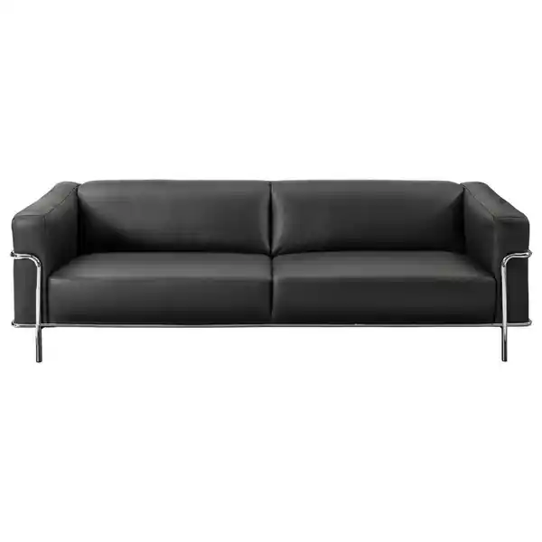 Gemütliche Auszeiten werden angesichts Ihres Johann Jakob 3-Sitzer-Sofas aus dem Programm 'Mandia' in Schwarz nun öfter für Sie auf der Tagesordnung stehen. Wichtige Details auf einen Blick: B x H x T: ca. 236 x 67 x 96 cm Anzahl der Sitzplätze: ca. 3 Sitzfläche: ca. 196 x 59 cm (B x T), Sitzhöhe: ca. 41 cm maximale Belastbarkeit: ca. 360 kg maximale Belastbarkeit pro Sitz: ca. 120 kg Fußhöhe: ca. 15 cm Offensichtlicher Wohlfühlfaktor Der Bezug besteht aus pigmentiertem Rindsleder: Das Material ist widerstandsfähig, fühlt sich fein an und überzeugt darüber hinaus aufgrund einer guten Abriebfestigkeit. Der echt bezogene Rücken gestattet das mittige Aufstellen der Couch im Raum. Eine bequeme Schaumstoff-Polsterung mit Wellenunterfederung, die zu tiefes Einsinken verhindert, unterstützt den Körper und führt Komfort herbei. Formstabil und äußerst punktelastisch kommt der kleinporige Polyurethanschaumkern daher. Allergikerfreundlich und luftdynamisch stellt er ein entspanntes Sitzgefühl sicher, da er auch wärmeisolierend und nahezu geräuschlos ist. Sehenswerter Hingucker Das markante Kolorit in Schwarz bildet den Ausgangspunkt für eine harmonische Feel-good-Atmosphäre. Als stimmiges Finish für das Design fungieren das Rundrohr aus Metall in Chromfarben, welche zugleich Luftzirkulation ermöglichen. Im Lieferumfang enthalten: echt bezogener Rücken Sichern Sie sich mit diesem schwarzen 3-Sitzer-Sofa mit Leder-Bezug das, was Ihnen am meisten bedeutet, wenn sich alles um das Thema Wohnlichkeit dreht! Da es sich bei echtem Leder um ein Naturprodukt handelt, kann die reale Optik von der Darstellung auf den Produktbildern abweichen. Preis versteht sich ohn
