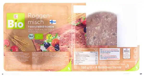 K-BIO Bio-Toastbrötchen, 4 St. = 260-g-Packg.
