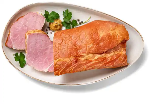 vom Schwein, am Stück, goldgelb geräuchert