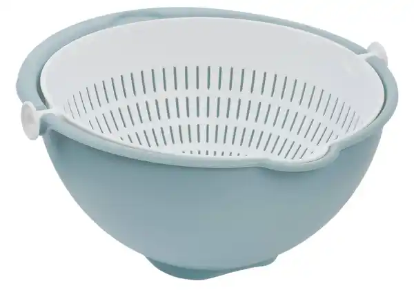 Aus Kunststoff > Praktische Kombination aus Schüssel und Sieb > Ideal zum Waschen von Obst, Salat etc. > Auch zum Abgießen von Pasta geeignet > Spülmaschinengeeignet > Größe ca. Ø 25 x 11 cm