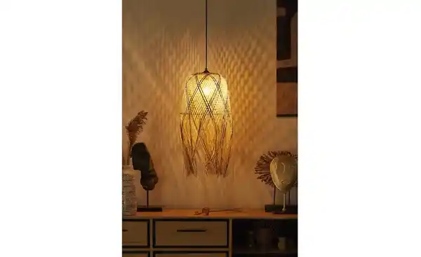 Details##### KHG Pendelleuchte, 1-flammig, Bambus mit Fransen