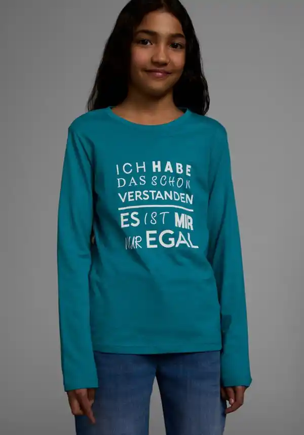 Ob Mode-Blogger oder nicht — in dieses Langarmshirt »Ich hab das schon verstanden - es ist mir nur egal« der Marke KIDSWORLD werden sich alle Mädels verlieben. Es wirkt mit dem Aufdruck peppig und dynamisch. Das Shirt hat einen Rundhalsausschnitt mit Rippbündchen und ist basic geschnitten, sodass sich Teenies frei bewegen können.