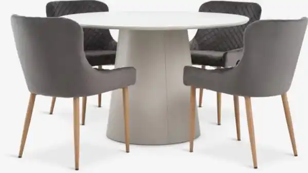 KLIPLEV Ø120 Tisch Travertin + 4 PEBRINGE grau samt