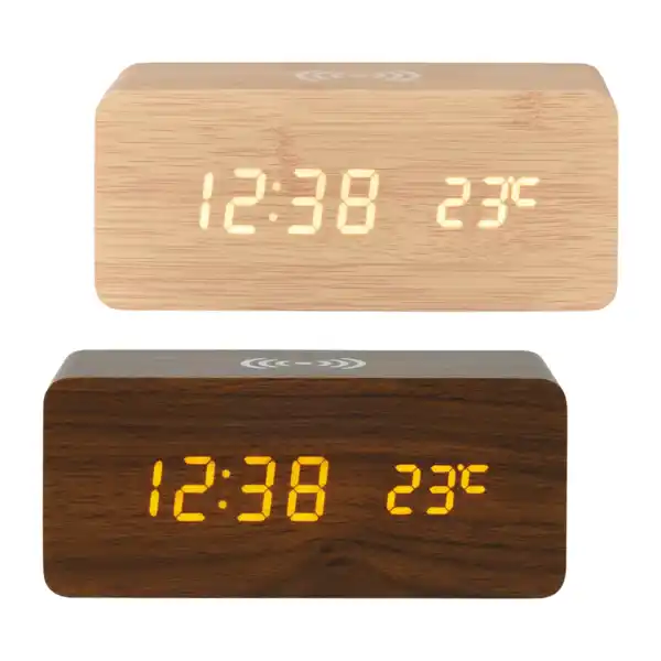 WC25_05238; kabellose Ladefunktion; digitales Display, Anzeige von Monat, Tag und Raumtemperatur; 3 Weckeinstellungen; inkl. USB-C-Kabel und Batterien; verschiedene Farbvarianten