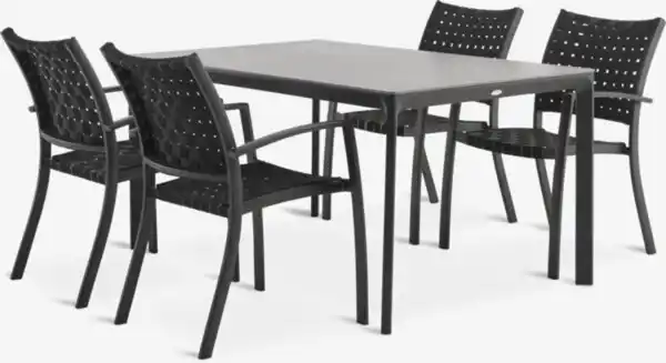 KUMLA L150 Tisch grau + 4 GLOMFJORD Stuhl schwarz