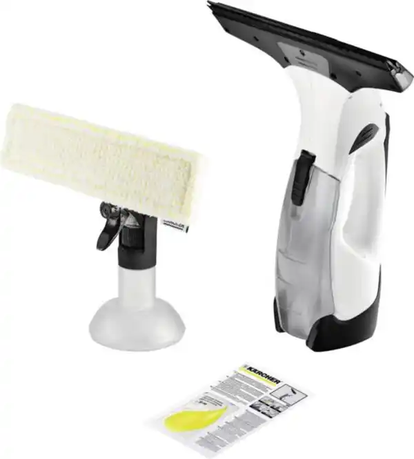 Akku-Fenstersauger, Abziehdüse: 280mm breit, 100 ml Schmutzwasserbehälter, Li-Ionen-Akkusystem, bis zu 35 Minuten Betriebszeit, Sprühflasche mit Wischer, Glasreiniger-Konzentrat, 20 ml Inhalt