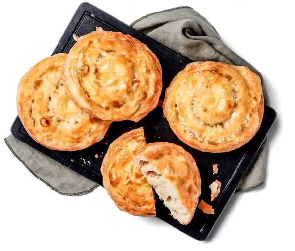 Plunderteigling mit Käsecremefüllung, mit Käse bestreut