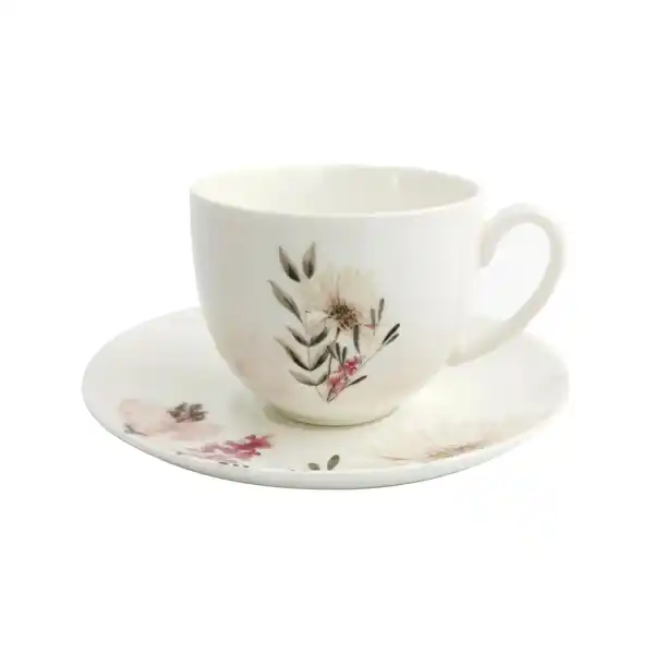 Diese Kaffeetasse mit Untertasse ist mit Blumen-Motiv für jede anstehende Kaffeerunde bestens geeignet. Das Geschirr ist aus hochwertigem New Bone China gefertigt und spül- und mikrowellengeeignet. Mit einem Durchmesser von ca. 15 cm und einem Fassungsvermögen von ca. 220 ml servieren Sie aromatischen Kaffee oder leckeren Tee stilvoll.