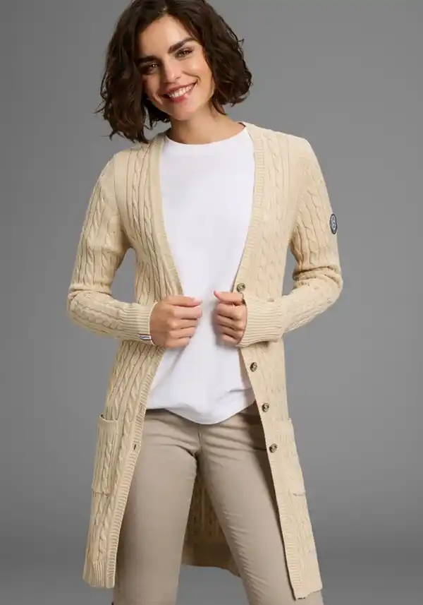 KangaROOS Longstrickjacke mit trendigem Zopfmuster und Taschen, Beige|weiß