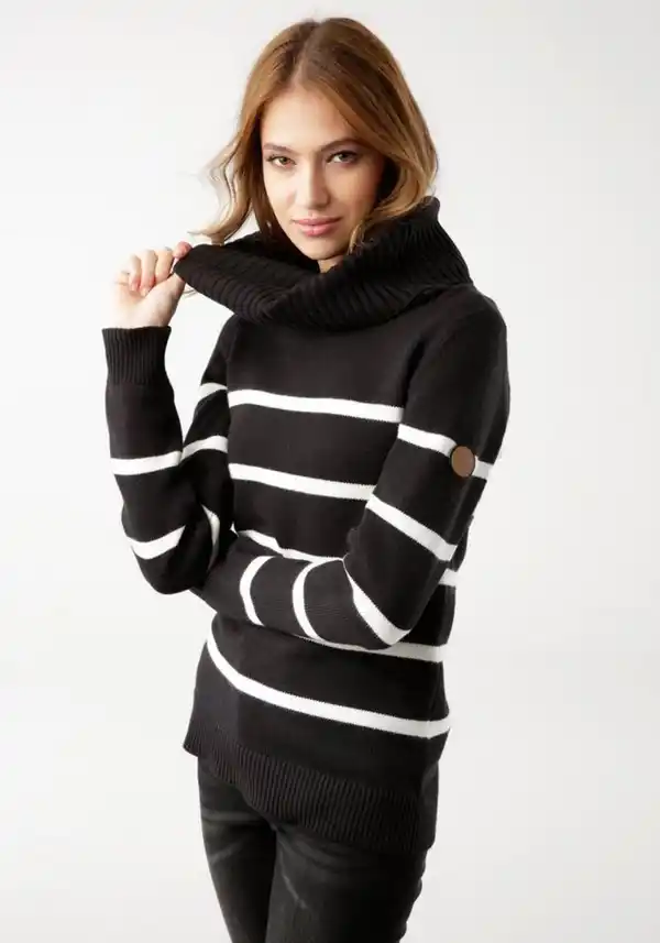 KangaROOS Rollkragenpullover in lässiger Form mit Kontraststreifen, Schwarz|weiß