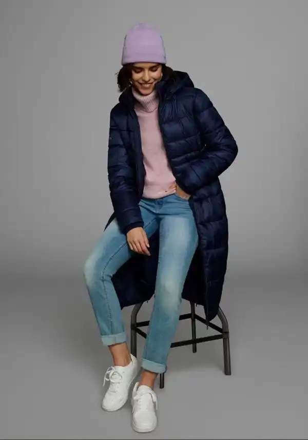 Attraktive Outdoorwear. Die Steppjacke von Kangaroos setzt auf coole Details, zu denen unter anderem der reflektierende Druck am Ärmel zählt. Die Kapuze ist mit wärmendem Fleece gefüttert, an den Seiten befinden sich versteckte Reißverschluss-Eingrifftaschen in der Teilungsnaht. Praktischer Natur: der 2-Wege-Reißverschluss der Jacke. Die langen Ärmel schließen mit bequemen Rippbündchen ab. Aus wattierter und gesteppter Qualität: die Steppjacke von Kangaroos.