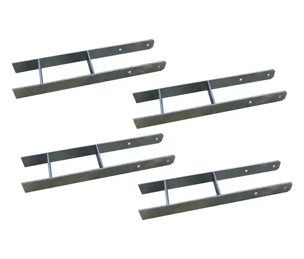 Karibu H-Anker 4er-Set Farbe: Silberfarben Material: Stahl, verzinkt Maße: B x H x T je ca. 12 x 60 x 12 cm. Materialstärke ca. 5 mm Inhalt: 4 Stück im Set Gewicht: Je ca. 4 kg Gebrauchsanweisung: Empfohlene Schrauben: M12 Schlossschraube, Länge 14 cm sowie Mutter und Unterlegscheiben, 2 Stück pro Pfostenanker (nicht im Lieferumfang enthalten) Warnhinweise: Zum Schutz vor Schnittverletzungen sind bei allen Arbeiten schnittfeste Schutzhandschuhe zu tragen. Das Tragen der Handschuhe dient der Vermeidung von Verletzungen an den Händen. Achten Sie darauf, dass die Handschuhe intakt und für die jeweilige Tätigkeit geeignet sind. Bei Beschädigung sind diese unverzüglich zu ersetzen. Technische Details: Empfohlene Schrauben: M12 Schlossschraube, Länge 14 cm sowie Mutter und Unterlegscheiben, 2 Stück pro Pfostenanker (nicht im Lieferumfang enthalten) Sonstige Hinweise: Artikel wird montiert geliefert Lieferung in 2 Packstücken Anlieferung per Paketdienstleister B x H x T Packstücke 2x ca. 72 x 15,5 x 21,5 cm Hersteller-Artikel-Nummer: 10163 Hersteller: Karibu Holztechnik GmbH, Eduard-Suling-Straße 17, 28217 Bremen E-Mail: service@karibu.de Zur Stabilisierung von allen Pavillons und Carports der Firma Karibu, speziell Pavillon »Markaska«H-Pfostenanker kombiniert Standfestigkeit, Tragfähigkeit, Holzschutz, Montagefreundlichkeit und Langlebigkeit in einem einzigen BauteilMaximale Standfestigkeit: H-Anker sorgen für einen sicheren und stabilen Halt – auch bei starkem Wind oder unebenem UntergrundSichere Verankerung im Fundament: Ideal zur festen Einbetonierung in Punkt- oder Streifenfundamenten – für dauerhafte StabilitätHohe Tragkraft für alle gängigen Carports oder PavillonsVermeidung von Feuchtigkeitsschäden: H-Anker heben die Holzkonstruktion vom Boden ab – so bleibt das Holz trocken und wird vor Schädlingen besser geschütztEinfache Montage: durchdachtes Design für eine schnelle und unkomplizierte Installation dank vorgebohrter Löcher – für Heimwerker geeignetWitterungsbeständig: aus verzinktem Stahl für optimalen Korrosionsschutz und eine lange Lebensdauer im AußenbereichMADE IN GERMANY