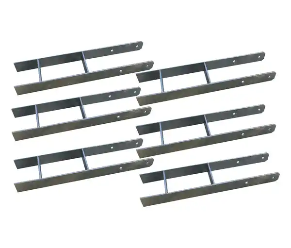Karibu H-Anker 6er-Set Farbe: Silberfarben Material: Stahl, verzinkt Maße: B x H x T je ca. 12 x 60 x 12 cm. Materialstärke ca. 5 mm Inhalt: 6 Stück im Set Gewicht: Je ca. 4 kg Gebrauchsanweisung: Empfohlene Schrauben: M12 Schlossschraube, Länge 14 cm sowie Mutter und Unterlegscheiben, 2 Stück pro Pfostenanker (nicht im Lieferumfang enthalten) Warnhinweise: Zum Schutz vor Schnittverletzungen sind bei allen Arbeiten schnittfeste Schutzhandschuhe zu tragen. Das Tragen der Handschuhe dient der Vermeidung von Verletzungen an den Händen. Achten Sie darauf, dass die Handschuhe intakt und für die jeweilige Tätigkeit geeignet sind. Bei Beschädigung sind diese unverzüglich zu ersetzen. Technische Details: Empfohlene Schrauben: M12 Schlossschraube, Länge 14 cm sowie Mutter und Unterlegscheiben, 2 Stück pro Pfostenanker (nicht im Lieferumfang enthalten) Sonstige Hinweise: Artikel wird montiert geliefert Lieferung in 2 Packstücken Anlieferung per Paketdienstleister B x H x T Packstücke 2x ca. 72 x 15,5 x 21,5 cm Hersteller-Artikel-Nummer: 10164 Hersteller: Karibu Holztechnik GmbH, Eduard-Suling-Straße 17, 28217 Bremen E-Mail: service@karibu.de Zur Stabilisierung von allen Pavillons und Carports der Firma Karibu, speziell Pavillon »Markaska«H-Pfostenanker kombiniert Standfestigkeit, Tragfähigkeit, Holzschutz, Montagefreundlichkeit und Langlebigkeit in einem einzigen BauteilMaximale Standfestigkeit: H-Anker sorgen für einen sicheren und stabilen Halt – auch bei starkem Wind oder unebenem UntergrundSichere Verankerung im Fundament: Ideal zur festen Einbetonierung in Punkt- oder Streifenfundamenten – für dauerhafte StabilitätHohe Tragkraft für alle gängigen Carports oder PavillonsVermeidung von Feuchtigkeitsschäden: H-Anker heben die Holzkonstruktion vom Boden ab – so bleibt das Holz trocken und wird vor Schädlingen besser geschütztEinfache Montage: durchdachtes Design für eine schnelle und unkomplizierte Installation dank vorgebohrter Löcher – für Heimwerker geeignetWitterungsbeständig: aus verzinktem Stahl für optimalen Korrosionsschutz und eine lange Lebensdauer im AußenbereichMADE IN GERMANY