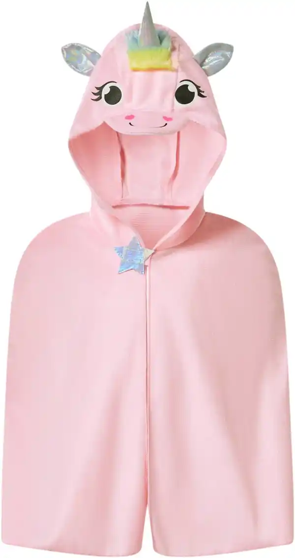 Aus Polyester > Kapuze mit Gesicht, Ohren, Horn und Mähne > Mit Klettverschluss vorn