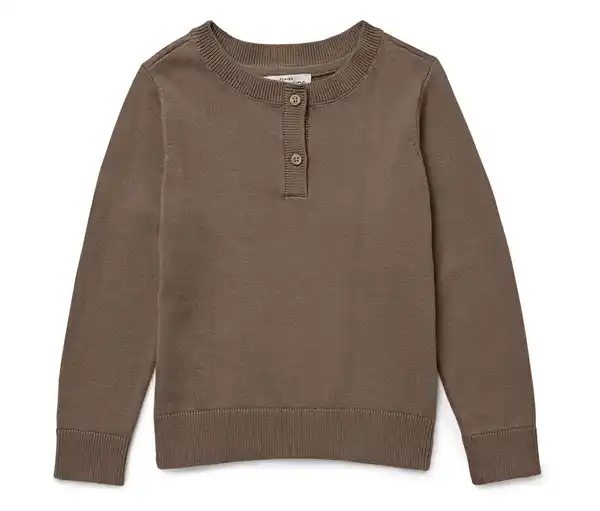 Kinder-Henley-Strickpullover Farbe: Braun Material: 100% Baumwolle (aus ökologischem Anbau) Sonstige Hinweise: Größenlauf/Alter: Gr. 86/92 (ca. 12 – 24 M.) Gr. 98/104 (ca. 2 – 4 J.) Gr. 110/116 (ca. 4 – 6 J.) Gr. 122/128 (ca. 6 – 8 J.) Gr. 134/140 (ca. 8 – 10 J.) Hautsympathische, reine BaumwolleMit Knopfleiste vorne zum einfachen An- und AusziehenAus Bio-BaumwolleDieser Strickpullover schützt Wasserressourcen.