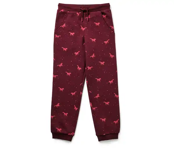 Kinder-Jogginghose, Pferd Farbe: Weinrot mit hellrotem Pferde-Alloverprint Material: 60% Baumwolle (Unterstützt die Initiative Cotton made in Africa), 40% Polyester Sonstige Hinweise: Größenlauf/Alter: Gr. 86/ 92 (ca. 1 – 2 J.) Gr. 98/104 (ca. 2 – 4 J.) Gr. 110/116 (ca. 4 – 6 J.) Gr. 122/128 (ca. 6 – 8 J.) Weich und wärmend durch angeraute InnenseiteBequemer, elastischer Bund2 Eingrifftaschen vorneRippbündchen am BeinabschlussUnterstützt die Initiative Cotton made in AfricaDiese Jogginghose unterstützt die Farmer*innen.