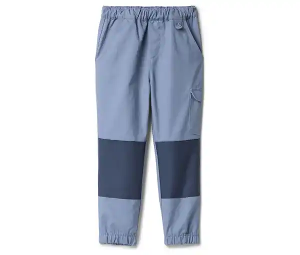 Kinder-Outdoorhose, blau Farbe: Mittelblau mit dunkelblauen Einsätzen Material: 65% Polyester, 35% Baumwolle Einsätze 100% Polyester Maße: Innenbeinlänge ca. 41 cm (Gr. 98/104) Sonstige Hinweise: Größenlauf/Alter: Gr. 86/92 (ca. 1 – 2 J.) Gr. 98/104 (ca. 2 – 4 J.) Gr. 110/116 (ca. 4 – 6 J.) Gr. 122/128 (ca. 6 – 8 J.) Passform: Wasserabweisend Verstärkte Einsätze aus Oxford-Gewebe an Knien und GesäßWasserabweisend durch evoPel-Imprägnierung auf Knie und GesäßElastischer Bund mit innenliegender WeitenregulierungSchlupfform2 seitlich eingesetzte Taschen1 aufgesetzte Tasche am BeinElastischer Bund an den Beinen