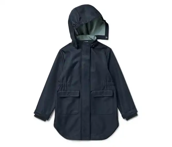 Kinder-Softshellmantel Farbe: Dunkelblau Innenfutter grün Material: 100% Polyester. Rippe 96% Polyester, 4% Elasthan Maße: Gesamtlänge ca. 71,5 cm (Gr. 146/152) Sonstige Hinweise: Größenlauf/Alter: Gr. 122/128 (ca. 6 – 8 J.) Gr. 134/140 (ca. 8 – 10 J.) Gr. 146/152 (ca. 10 – 12 J.) Gr. 158/164 (ca. 12 – 14 J.) Gr. 170/176 (ca. 14 – 16 J.) Softshellware mit 3-Lagen-Laminat – winddicht, wasserdicht und atmungsaktivElastisches Obermaterial für hohen Tragekomfort und optimale Bewegungsfreiheit – hält einer Wassersäule bis 5.000 mm standMit umweltschonender evoPel-ImprägnierungAbknöpfbare KapuzeVerdeckter Frontreißverschluss mit Kinnschutz2 aufgesetzte Seitentaschen mit Druckknopf