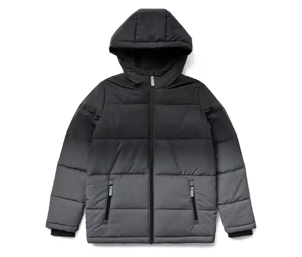 Kinder-Steppjacke mit reflektierenden Elementen Farbe: Farbverlauf von schwarz nach silber-reflektierend Material: 100% Polyester Maße: Gesamtlänge ca. 62 cm (Gr. 146/152) Sonstige Hinweise: Größenlauf/Alter: Gr. 122/128 (ca. 6 – 8 J.) Gr. 134/140 (ca. 8 – 10 J.) Gr. 146/152 (ca. 10 – 12 J.) Gr. 158/164 (ca. 12 – 14 J.) Gr. 170/176 (ca. 14 – 16 J.) Design mit reflektierendem FarbverlaufWinddichtExtraweiche und wärmende WattierungGr. 122/128 mit abknöpfbarer KapuzeHochgeschlossener Frontreißverschluss mit Kinnschutz2 seitliche Reißverschluss-Eingrifftaschen mit wärmendem FleecefutterÄrmelabschluss mit weichem RippbündchenGr. 122/128 und 134/140 mit beschreibbarem Namensschild