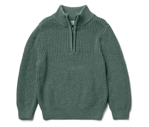 Kinder-Strick-Troyer Farbe: Dunkelgrün Material: 100% Baumwolle (aus ökologischem Anbau) Sonstige Hinweise: Größenlauf/Alter: Gr. 86/92 (ca. 12 – 24 M.) Gr. 98/104 (ca. 2 – 4 J.) Gr. 110/116 (ca. 4 – 6 J.) Gr. 122/128 (ca. 6 – 8 J.) Kinder-Pullover mit RippstrukturSchlupfform für einfaches An- und AusziehenKragen mit ReißverschlussAus Bio-BaumwolleDieser Troyer schützt Wasserressourcen.