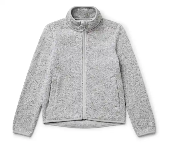 Kinder-Strickfleecejacke Farbe: Hellgrau meliert Material: 100% Polyester Maße: Gesamtlänge ca. 42 cm (Gr. 98/104) Sonstige Hinweise: Größenlauf/Alter: Gr. 86/92 (ca. 1 – 2 J.) Gr. 98/104 (ca. 2 – 4 J.) Gr. 110/116 (ca. 4 – 6 J.) Gr. 122/128 (ca. 6 – 8 J.) Besonders weich, wärmend und atmungsaktivOptimale Wärmeisolation durch weich angeraute InnenseiteReißverschluss mit KinnschutzMit seitlichen EingrifftaschenAllrounder: allein als Midlayer oder in Kombination mit einer Hardshell-Jacke zu tragen